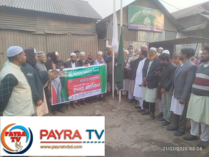 যথাযোগ্য মর্যাদায় ২১ ফেব্রুয়ারী পালিত হচ্ছে। জামালপুর জেলার দেওয়ানগঞ্জ উপজেলার সানন্দবাড়িতে জামায়াতে ইসলামী দলীয় অফিসে দলীয় ও জাতীয় পতাকা উত্তোলন, জাতীয় সংগীত, ভাষা শহীদের রুহের মাগফেরাত কামনায় দোয়া ও মোনাজাত পরিচালনা করেন চর আমখাওয়া ইউনিয়ন জামায়াতে ইসলামী আমির মওলানা আব্দুল মজিদ আকন্দ।