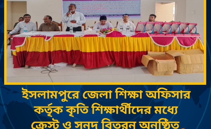 ২৪ জুলাই বৃহস্পতিবার জামালপুর জেলার ইসলামপুর উপজেলার মাধ্যমিক ও উচ্চ শিক্ষা অধিদপ্তরের আওতাধীন (PBGSI) প্রকল্পের আওতায়, ইসলামপুর উপজেলাধীন, কৃতি শিক্ষার্থীদের ক্রেস্ট ও সনদ বিতরণ অনুষ্ঠিত হয়।