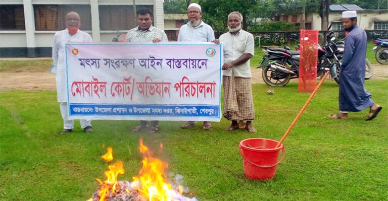 শেরপুরের ঝিনাইগাতীতে নিষিদ্ধ কারেন্টের জাল ধবংস